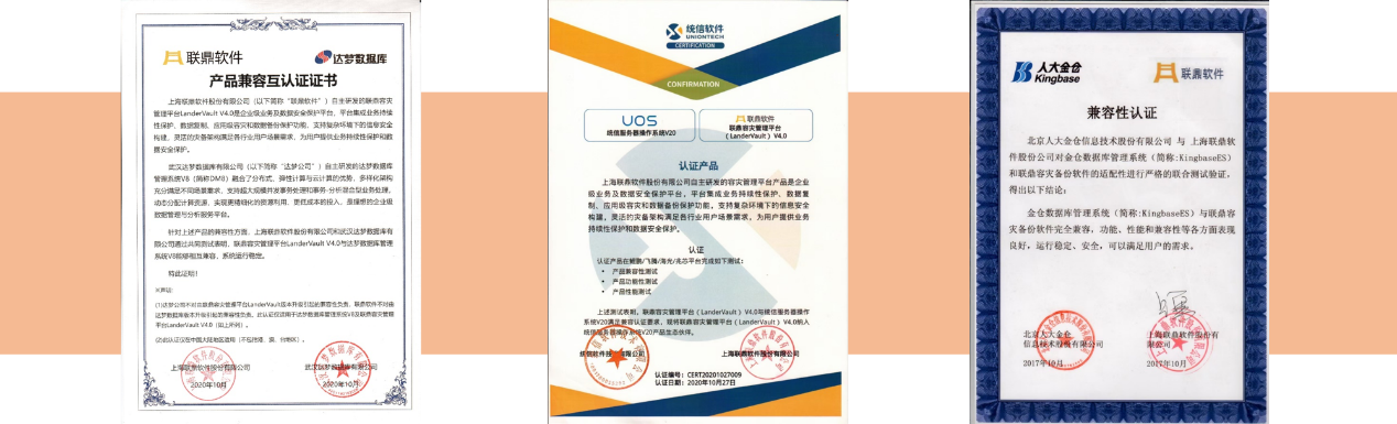 上海联鼎软件股份有限公司全力推进与各大信创相关国产软硬件厂商进行兼容性适配和工程师认证工作,已完成包括麒麟操作系统、统信UOS、红旗、武汉达梦数据库、人大金仓数据库、瀚高DB包括龙芯、兆芯、飞腾芯片在内的多家信创单位兼容性适配,全面致力于与生态伙伴共同提供高效、健壮的纯国产数据安全保障解决方案。