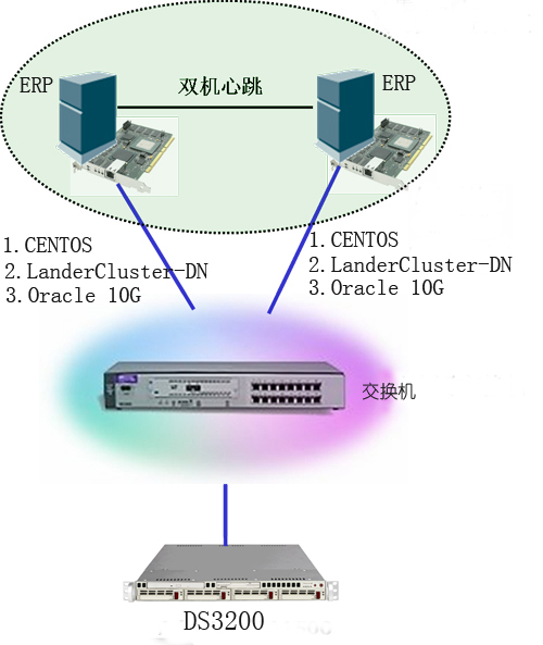 在双机系统环境中,主机运行应用系统,用户数据存放在共享存储子系统上或本地磁盘,LanderCluster-DN守护进程通过EtherNet监测整个集群的运行状态。由服务器、共享磁盘阵列子系统或镜像软件和 LanderCluster-DN双机高可用软件包组成一个有效的双机高可用集群系统。