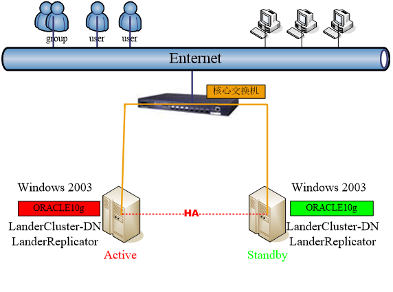 由于客户数据规模不大,并且投资预算有限,不想对整个系统进行迁移改造,部署共享存储环境下的集群。而业务环境必须要求达到高可用,停机将造成巨大影响。因此,为了保证系统的不间断,建议采用联鼎软件的Landercluster-DN For Windows集群软件,结合联鼎Windows操作系统平台同步复制软件LanderReplicator,来实现基于软件的本地双机。
